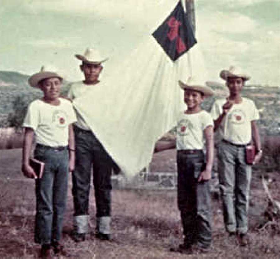 1965 – MUCHACHOS MOSTRANDO EL PRIMER DISTINTIVO ICTHUS
